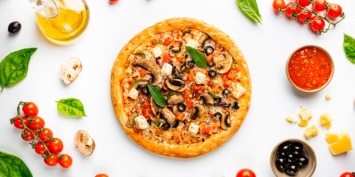 rajčatové sugo, sýr, šunka, žampiony*česnek